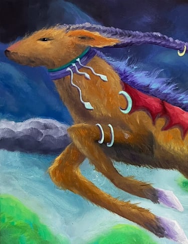 Original oil painting collection exploring identity and inner transformation through layered texture, saturated color and surreal narratives.