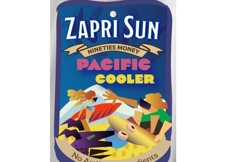 Nostalgic packaging redesign translating 90s beverage culture into a bold mylar concept for retail
